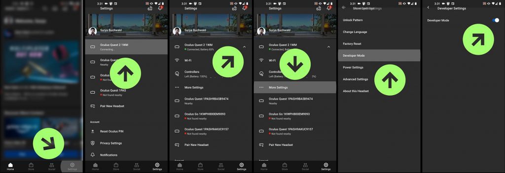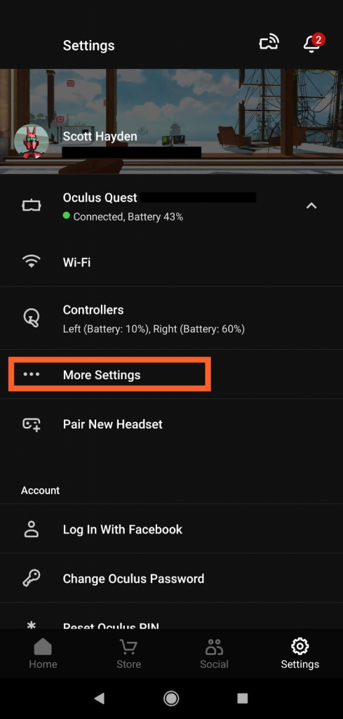 Enfin, la seule autre partie cruciale du puzzle pour cette méthode est que vous devez avoir accès à la même application mobile Oculus que celle avec laquelle vous avez couplé votre Quest lors de la configuration.