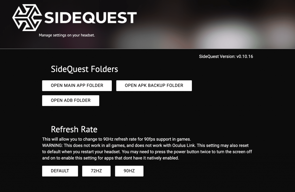 Si vous éteignez et rallumez le casque, il reviendra à 72Hz et vous devrez retourner sur SideQuest et appuyer à nouveau sur le bouton 90Hz.